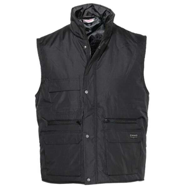 Γιλέκο αδιάβροχο με λάστιχο στους ώμους για στεγανότητα από τον αέρα και πέντε τσέπες, οι τρείς με καπάκι και οι δύο με φερμουάρ.